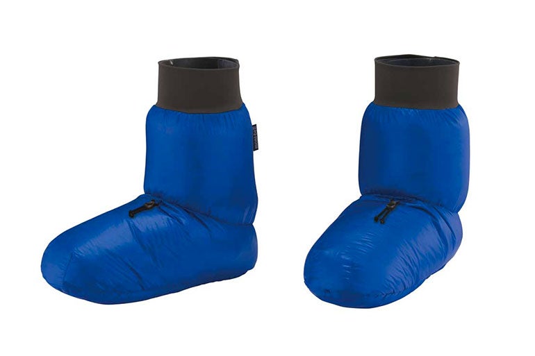 Mont-bell「ベーシック ダウン フットウォーマー」は保温性に優れた良質のダウンを使用し、コンパクトに収納できるダウンフットウォーマー。ドローコードで足首のフィット感が調節でき、脱げにくい。裏地にはずれにくい起毛メッシュ地を使用。履き口のストレッチ素材が冷気の侵入を防ぐ。