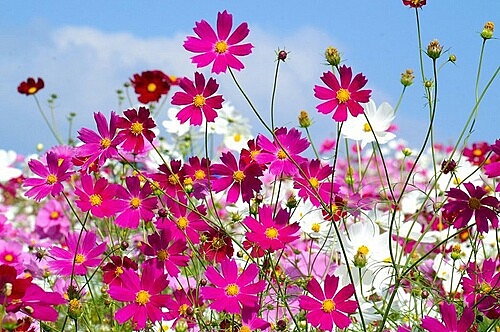 華奢な茎から華やかで繊細な花弁が美しいコスモスの花言葉は、「乙女の心、真心、調和」です。