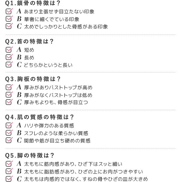 まずは簡単骨格診断で自分の骨格タイプをチェック!