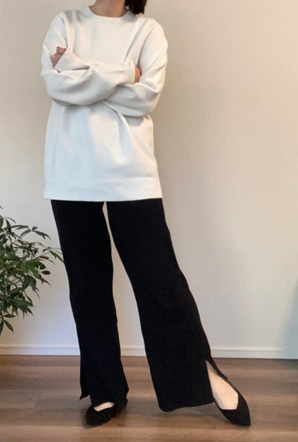 ユニクロで発見したこのスウェットライクなニットは、2,990円(税抜)とお値段もとってもリーズナブルで嬉しい。