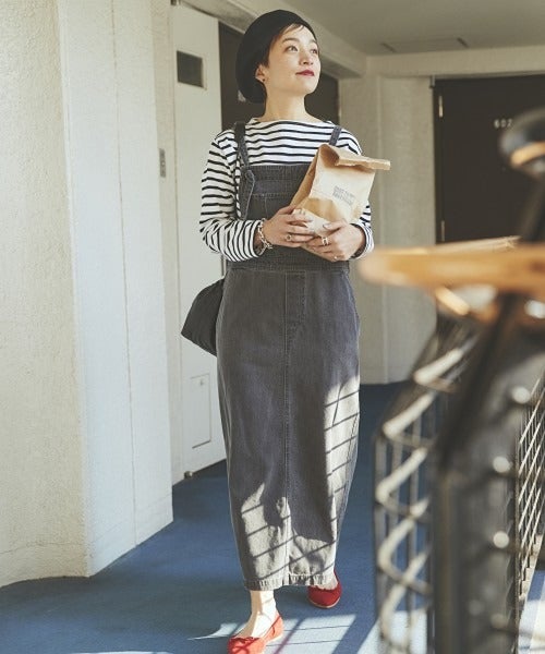 ボーダートップス×ジャンパースカート