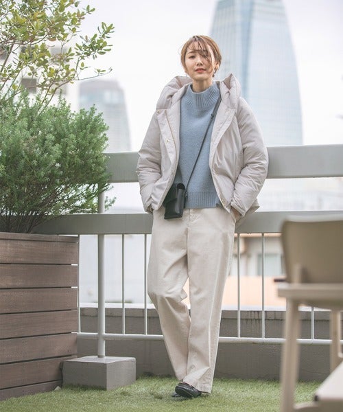 ダウンブルゾン×ワイドパンツ