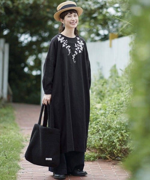 あえて真っ黒を選ぶことでアイビー刺繍がより一層際立ち、愛嬌を与えつつ大人の着こなしに昇華することが出来ます。