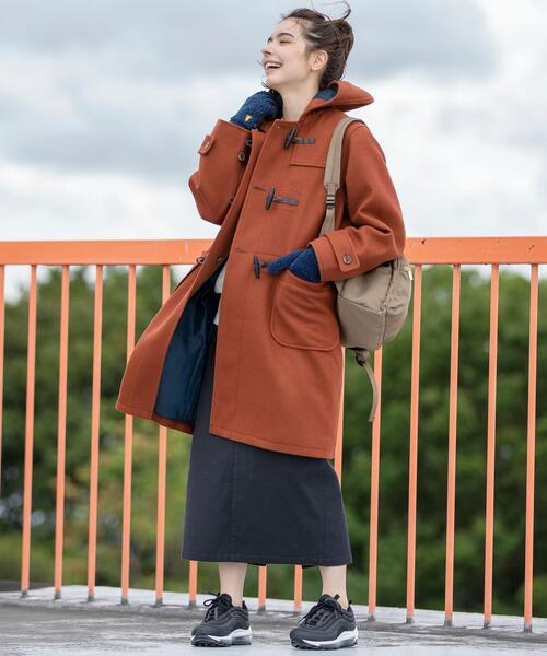 なかなか見ないレンガ色のダッフルコートは、彼氏の印象に素敵に残ること間違いありません♡