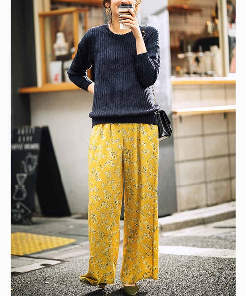 エフォートレスな公園デートを30代大人女性が楽しむなら、華やか且つリラクシーな花柄イージーパンツがおすすめ。