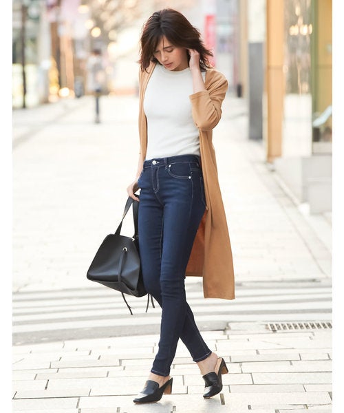 スキニーデニムは大人かっこいい春コーデへ導いてくれる王道アイテムなので、顔タイプ「クール」さんの春のワードローブに一着準備しておくといいですね。
