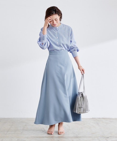 また、春らしいブルーのシャツ×スカートで爽やかな雰囲気をしっかりアピールしましょう。