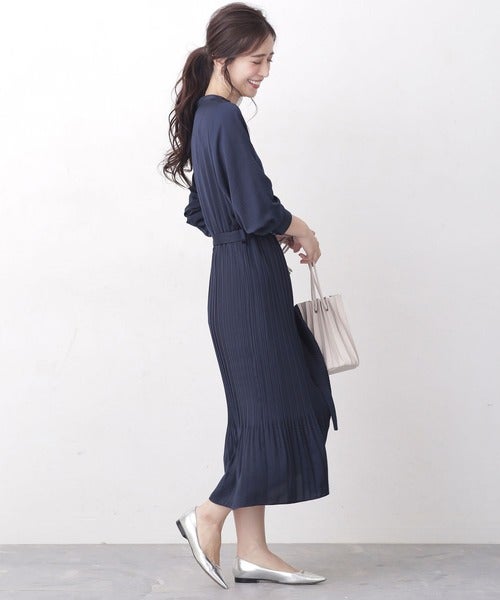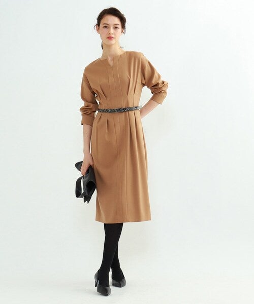直線が似合う顔タイプ「クール」の春コーデには、さりげなく、けれどもしっかりと縦の線をアピールできるこちらのワンピースがおすすめです。
