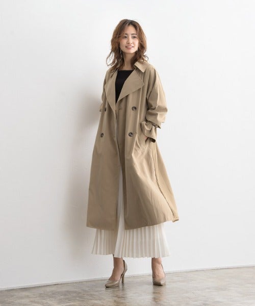クールな顔タイプ×骨格ウェーブの春ファッションには、スタイリッシュなデザインのトレンチコートを素敵に着こなしてみましょう。