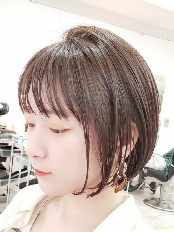 ショートボブならではの可愛らしさを保ちつつ、前髪スタイリングで大人っぽさをアップさせましょう。