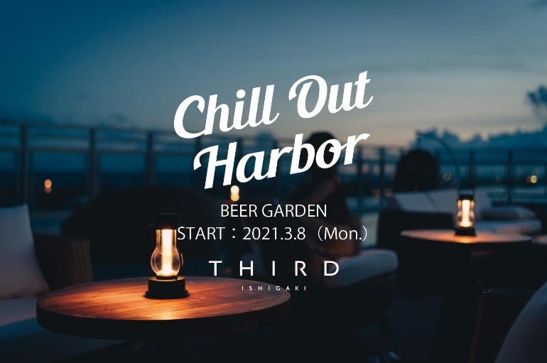 透明度の高い瑠璃色の海、温暖な気候で育った手つかずの豊かな自然、プラネタリウムのような満天の星。沖縄の離島の中でも抜群の人気を誇る石垣島。その島内に、2020年7月にオープンしたリゾートホテル「THIRD(サード)石垣島」にて、2021年3月8日(月)~9月末まで、期間限定のビアガーデン「Chill Out Harbor(チル アウト ハーバー)」がオープンした。