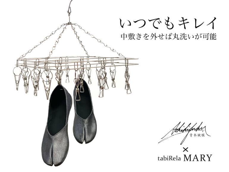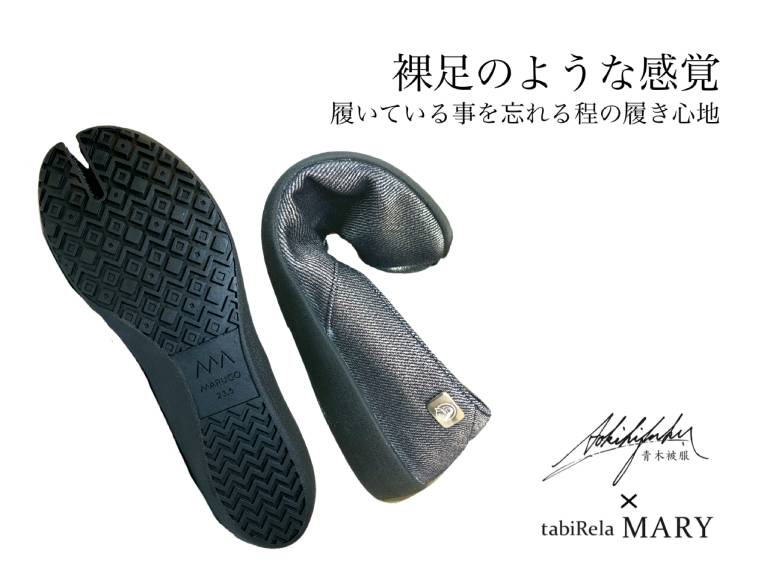岡山県に本社を置くデニムブランド「青木被服」と、同じく岡山県内で100年以上の歴史を誇る老舗足袋メーカー「丸五」がコラボレーションし、レディース用の足袋型パンプスを発売した。