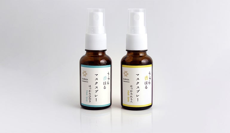マスクスプレーは、天然のハッカをベースに、みずみずしいレモン、森林の空気を思わせるヒノキの香りを加えた2種を展開。アロマオイルの効果で、マスクを清々しくリフレッシュさせる。レモンには殺菌効果が、ヒノキには抗菌作用が期待できるという。
