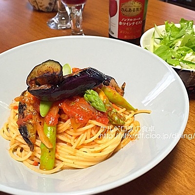 ■夏野菜たっぷりのトマトソーススパゲッティ