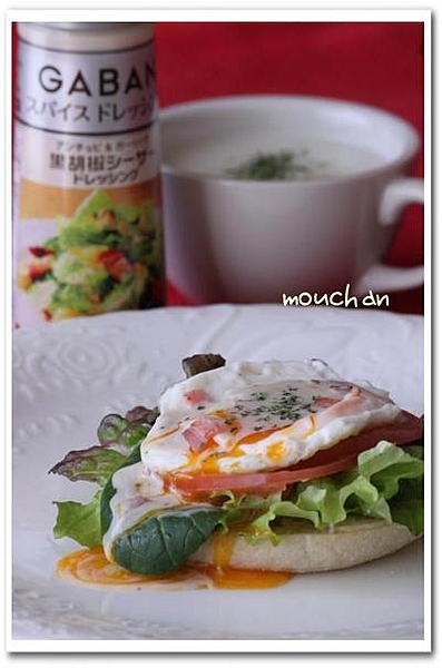 2. 焼きあがったマフィンに半熟の目玉焼きを乗せます。
