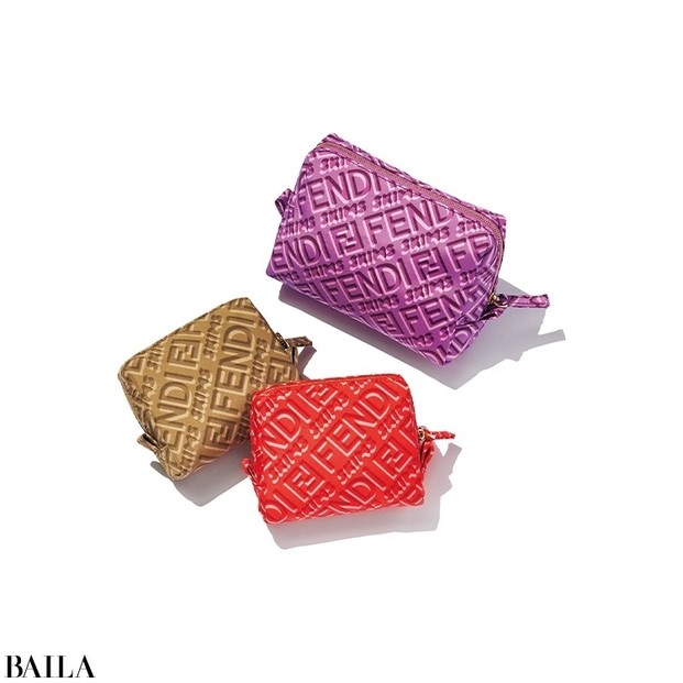 アメリカ人ソーシャライト、キム・カーダシアン・ウェストが手がけるブランド「スキムス」とフェンディがコラボし話題に。「グラフィカルなダブルネームロゴ入りのカラフルなポーチに目がくぎづけ。バッグに忍ばせて気分を上げたい!」。ポーチ「フェンディ×スキムス」(大)(12×15×9)¥55000・(小)(11×12×6)各¥50600/フェンディ ジャパン(フェンディ)