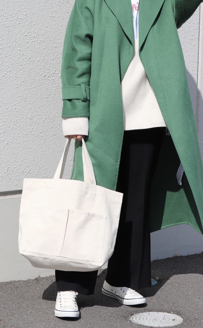 シンプルなデザインと色でどんな服装にも合わせやすく、使いやすいトートバッグです!