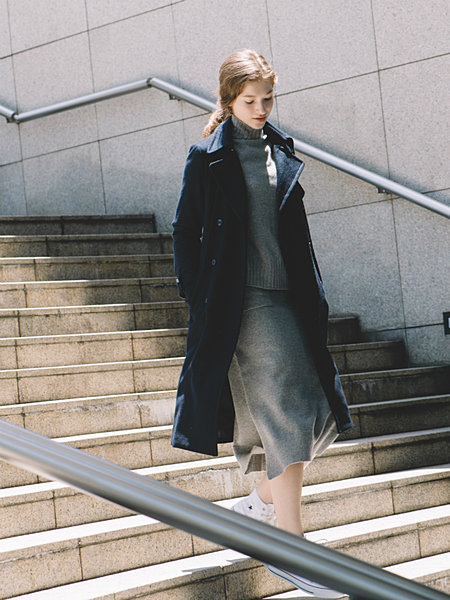 トレンチコート&スニーカーで