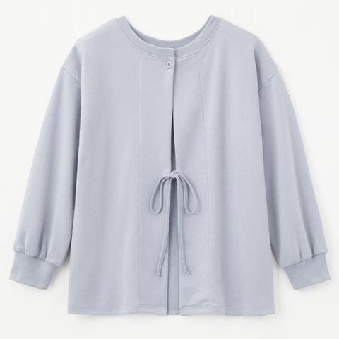 実は後ろのデザインがポイント!ロンTなどを合わせて、前後2WAYで着られる優れものです。こちら側を前にしてカーディガンとしても使えて便利ですよ◎