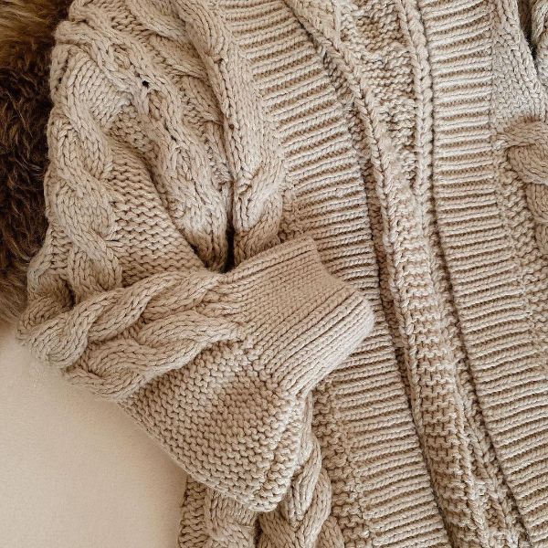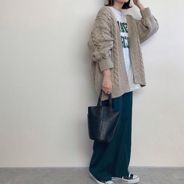 ざっくりとした編み目が特徴で、カジュアルに着られるニットカーディガン。