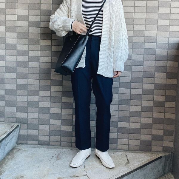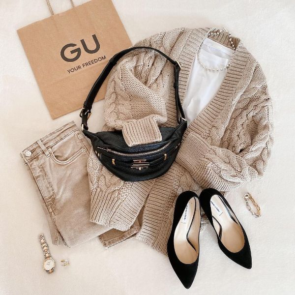 こちらが、GUの「チャンキーニットボーイフレンドカーディガン」。