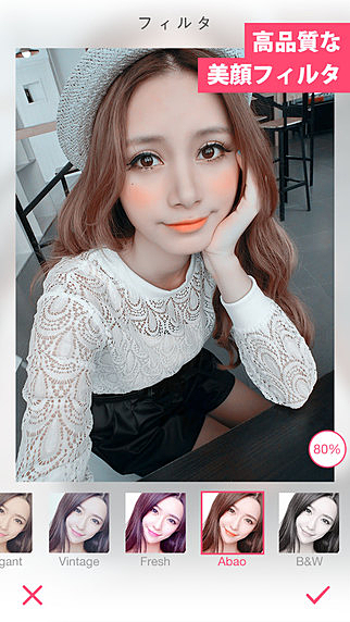 フィルタ機能でプリクラみたいな盛れるアプリ。