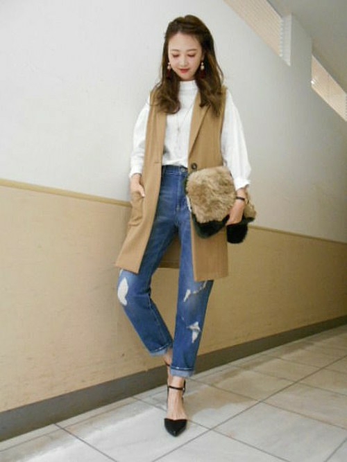 ロングジレをいつもの "無地トップス×デニム" にプラスするだけで、