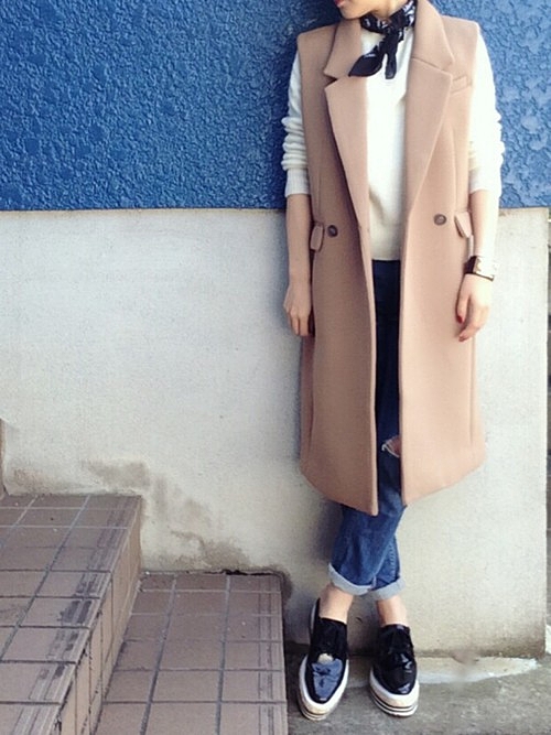 まるでコートみたいなかっちりとしたジレ。