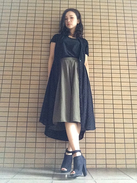 シンプルなスタイルながらも、黒ヒールで女度バッチリあがってます。