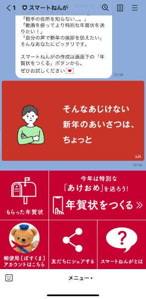 日本郵便が新しくスタートさせた「スマートねんが」なら、LINE内で作成&送信できてとっても手軽。