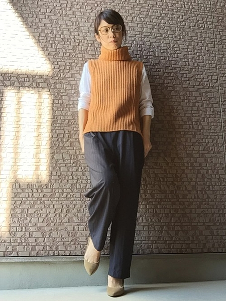 インナーにもトップスにも使えるタートルネックニットは重宝します。