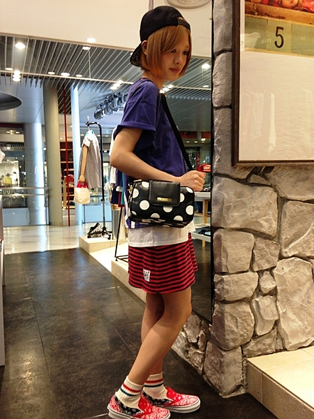 キュートなドット柄のショルダーバッグ♡ シンプルなカジュアルコーデに合わせても、スポーツミックスコーデにも合います♪