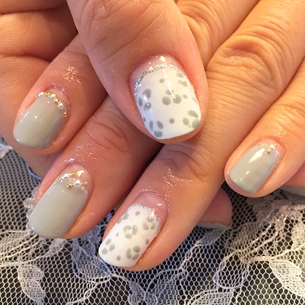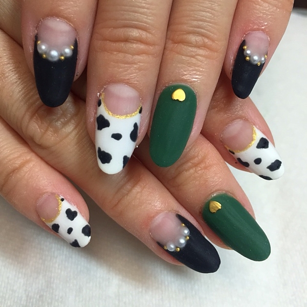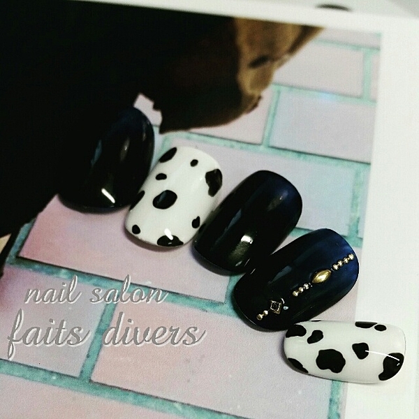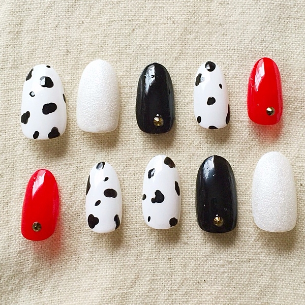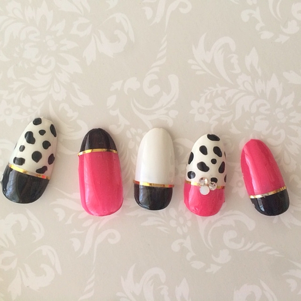 さりげないけど、お洒落なダルメシアン柄ネイルに。