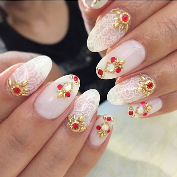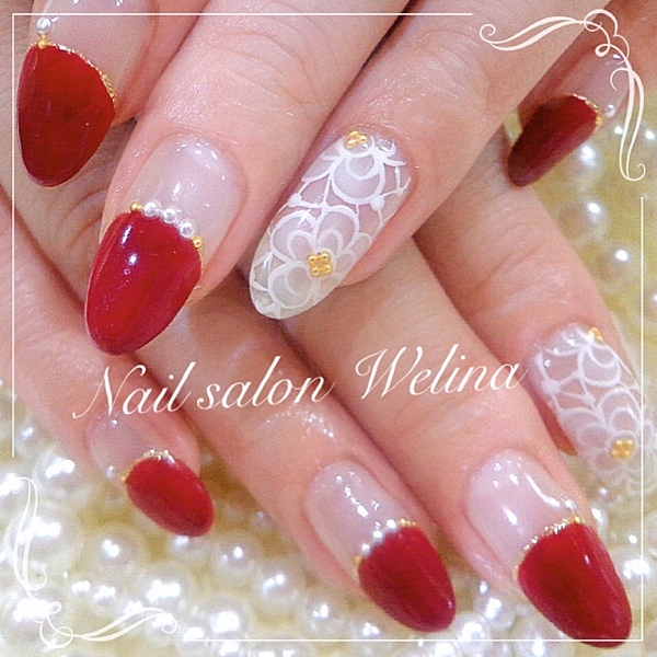 真っ赤なネイルば目を引くレースアップネイル。