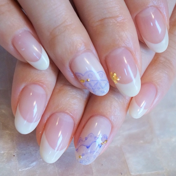 フレンチネイルと組み合わせてシンプルなトゥシューズネイル。