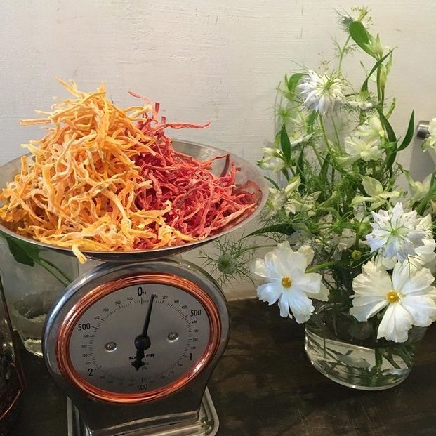 例えば「FOOD TEXTILE(フードテキスタイル))」というブランドでは、通常なら捨てられてしまうカット野菜の切れ端やコーヒーの出し殻などを食品関連企業や農家から買い取って染めたバッグ(写真)などのファッションアイテムを生み出しています。こういった取り組みをされている企業はいろいろあるのでチェックしてみてください。