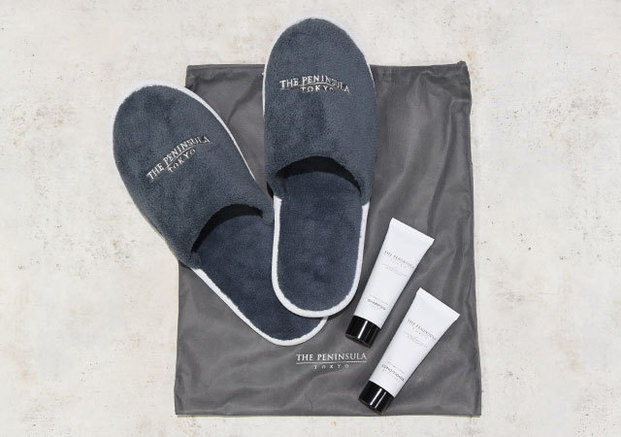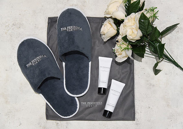 セット内容は、スイートルーム専用スリッパ(袋付き)、 ヘアシャンプー、ヘアコンディショナーの豪華3点。
