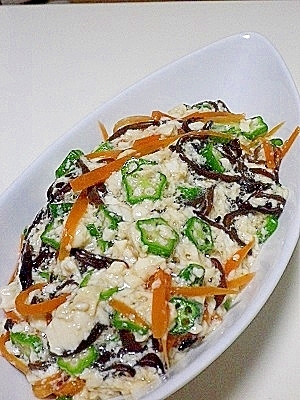 楽天レシピ:「オクラ×生きくらげの白和え 」より