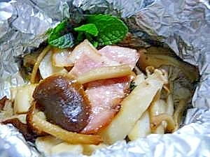 キノコとベーコンのホイル焼き