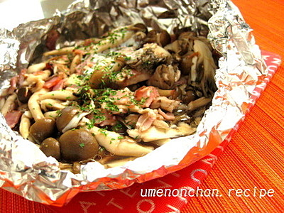 ■きのことベーコンと梅干しのホイル焼き
