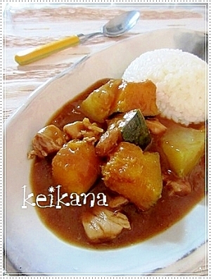 楽天レシピ:「圧力鍋で超簡単&時短☆コロとろ冬瓜かぼちゃカレー♡ 」より