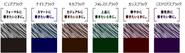 ②好みの黒はどれ?6色展開の黒ボールペン