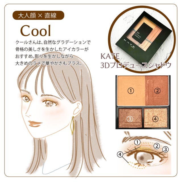 クールさんは、涼しげな目元に陰影を与えてくれるブラウン系のアイシャドウがおすすめ。