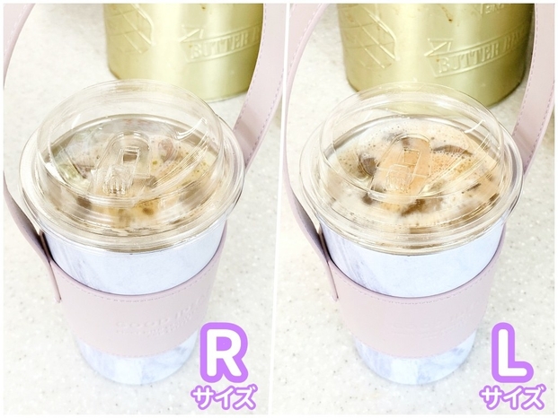 タンブラーに入るコンビニカップは、Rサイズ・Lサイズ両方に対応しています。