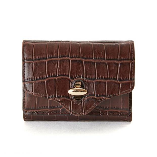 ツヤ感のあるクロコ柄素材がおしゃれな、HASHIBAMI(ハシバミ)の「ジーン クロコ 型押し ミニウォレット」も、2022年おすすめのブラウン系ミニ財布のひとつです。
