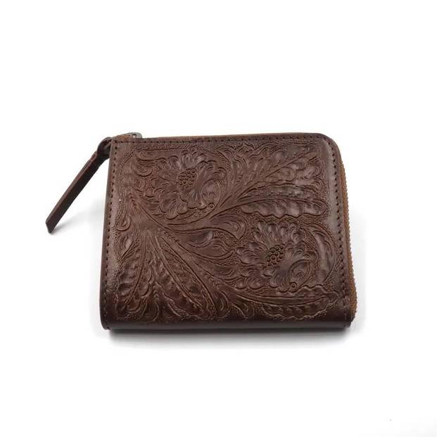 【2022金運財布】ブラウンのミニ財布③Lapis Note カービング 薄型ショートウォレット
