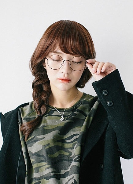 眉上の前髪に丸メガネをかければ大人っぽく知的に見えます。