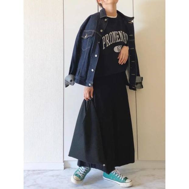 ここでもコンバースが大活躍!ラフな雰囲気がプラスされることで、きまりすぎず抜け感たっぷりに着こなせますよ◎