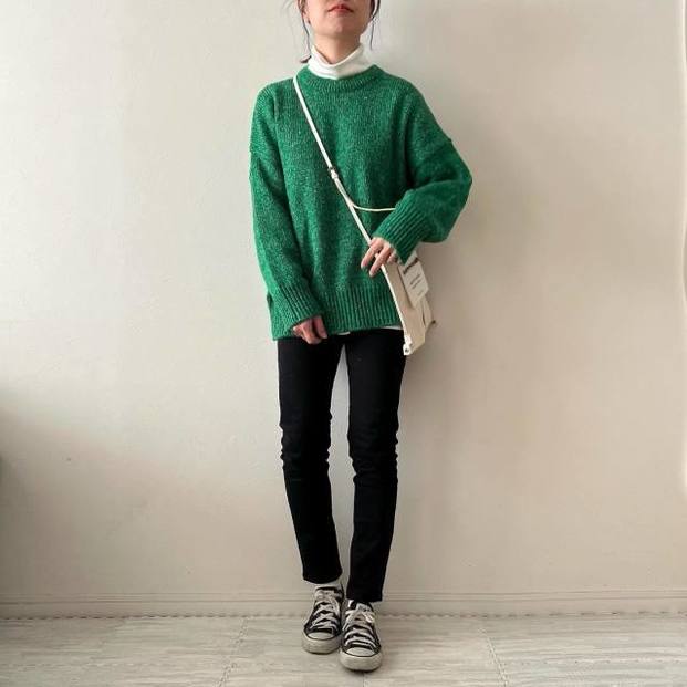 差し色のコンバースも人気!特に今季話題のグリーン系は、取り入れるだけでおしゃれ上級者見えを叶えてくれますよ。