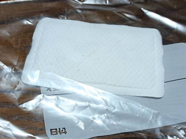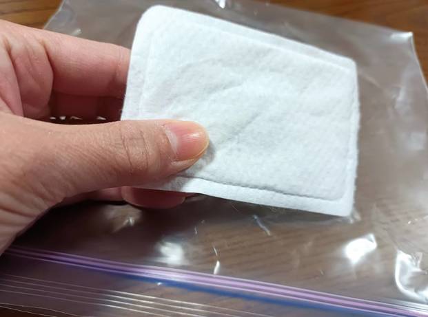 こちらは8時間使ったカイロで、まだ使用可能時間は残っています。密閉できる保存袋の中に、まだ温かいカイロを入れてしっかり密封します。